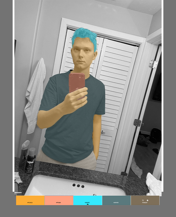 These are the colored versions. I used the color wheel on Adobe Color to find interesting palettes that would work together. In each project I turned my skin a different color, as I think that's the most unique change you can make in a project like this.